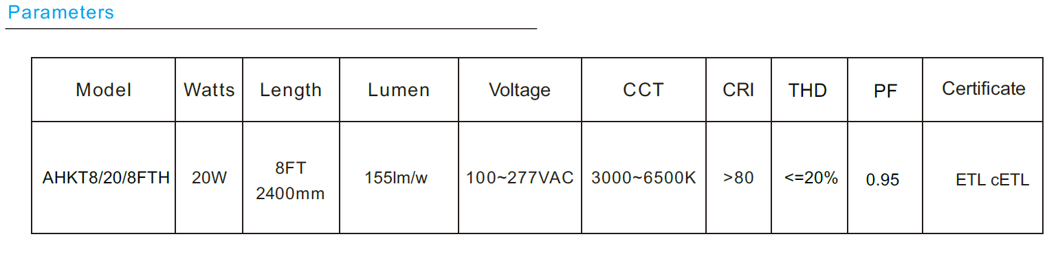 8' LED 20W 4000k or 5000k T8 Single Pin Type B (direct wire) Tube (Min of 25 Tube Order)